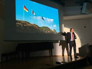 Mit packenden Vorträgen von Ingo Espenschied (Doku-Live) und anschließenden Gesprächen gingen am Vormittag ca. 300 Schüler der BBS Oldenburg-Wechloy und am Abend nochmals ca. 40 geladene Gäste im Kulturzentrum PFL in Oldenburg auf eine spannende Zeitreise. In Kooperation mit der BBS Wechloy und dem inForum im PFL konnten wir im Rahmen des gelungenen zweiten Schwerpunkttages in Weser-Ems vielfältige Europainformationen anbieten. Die lebhaften Gespräche und die große Resonanz zeigen, welch hohen Stellenwert das Thema Europa gerade heute hat.