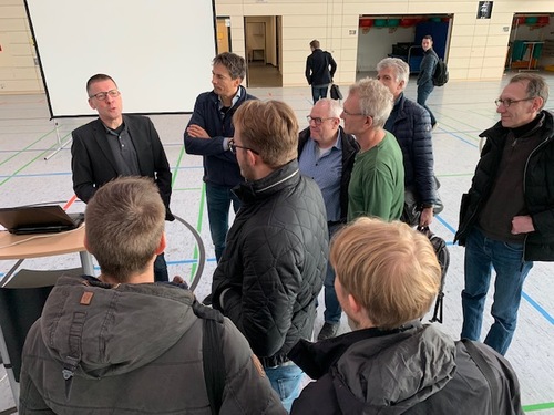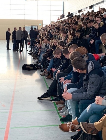 Vor insgesamt 450 Zuhörern, ganz überwiegend Schülern der BBS, wurde ein weiter thematischer Bogen zur Wachstumskritik auf europäischer Ebene aufgespannt. Prof. Paech ging auf die Initiative von insgesamt 238 europäischen Wissenschaftlerinnen und Wissenschaftlern ein, die in einem offenen Brief an die Kommission den Anstoß für ein EU-Wirtschaftsmodell ohne Wachstum fordern. Welche Möglichkeiten und Chancen sich aus einem EU-weiten Vorgehen ergeben, an welcher Stelle die EU-Ebene Vorbild für globale Gerechtigkeit in ökologischen Grenzen sein kann, welche Versuche für grünes Wachstum auf europäischer Ebene denkbar sein könnten, ordnete Prof. Paech für das Auditorium ein. Noch lange nach Abschluss des eigentlichen Vortrags über Skizzen zu einem Modell einer Post-Wachstums-Wirtschaft auf europäischer Ebene und dem folgenden Austausch mit dem Auditorium wurde Prof. Paech von interessierten Teilnehmerinnen und Teilnehmern der Veranstaltung in kleiner Gesprächsrunde zu seinen Thesen befragt. Dabei ging es von der Energiewende bis hin zu den Fragen der Nutzung von aktuellen Krisen als Chance für einen Umbau der Wirtschaft.