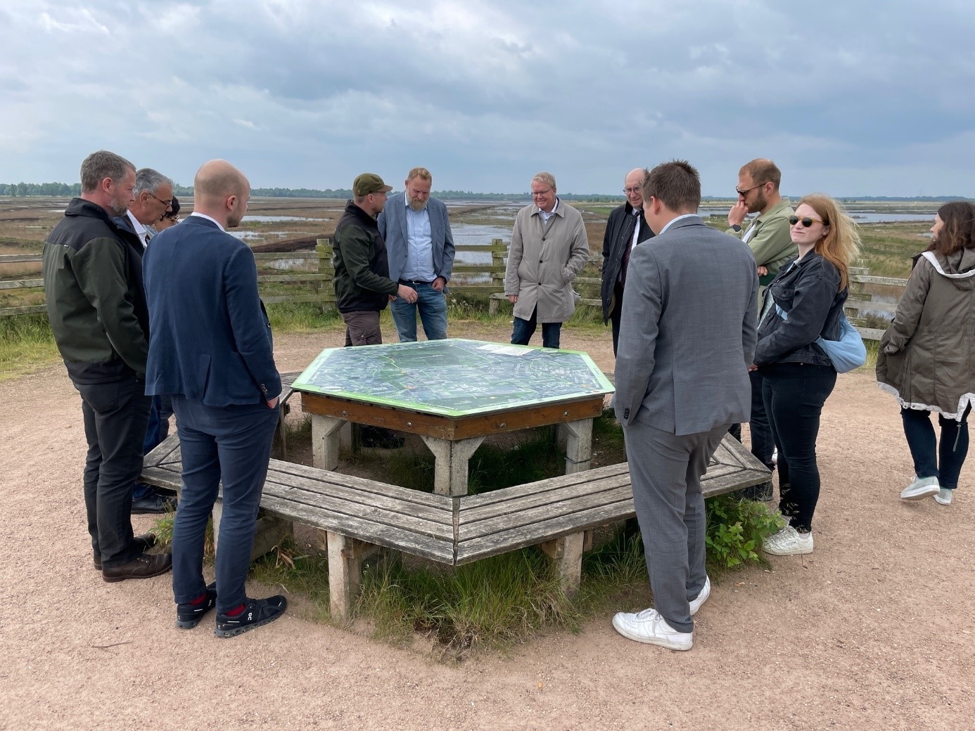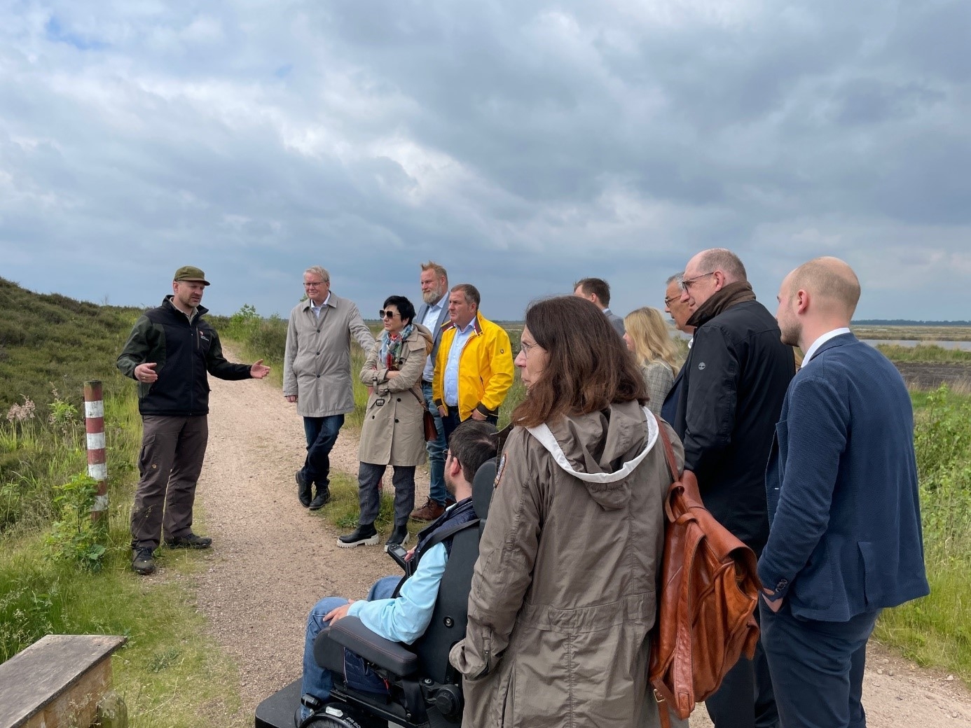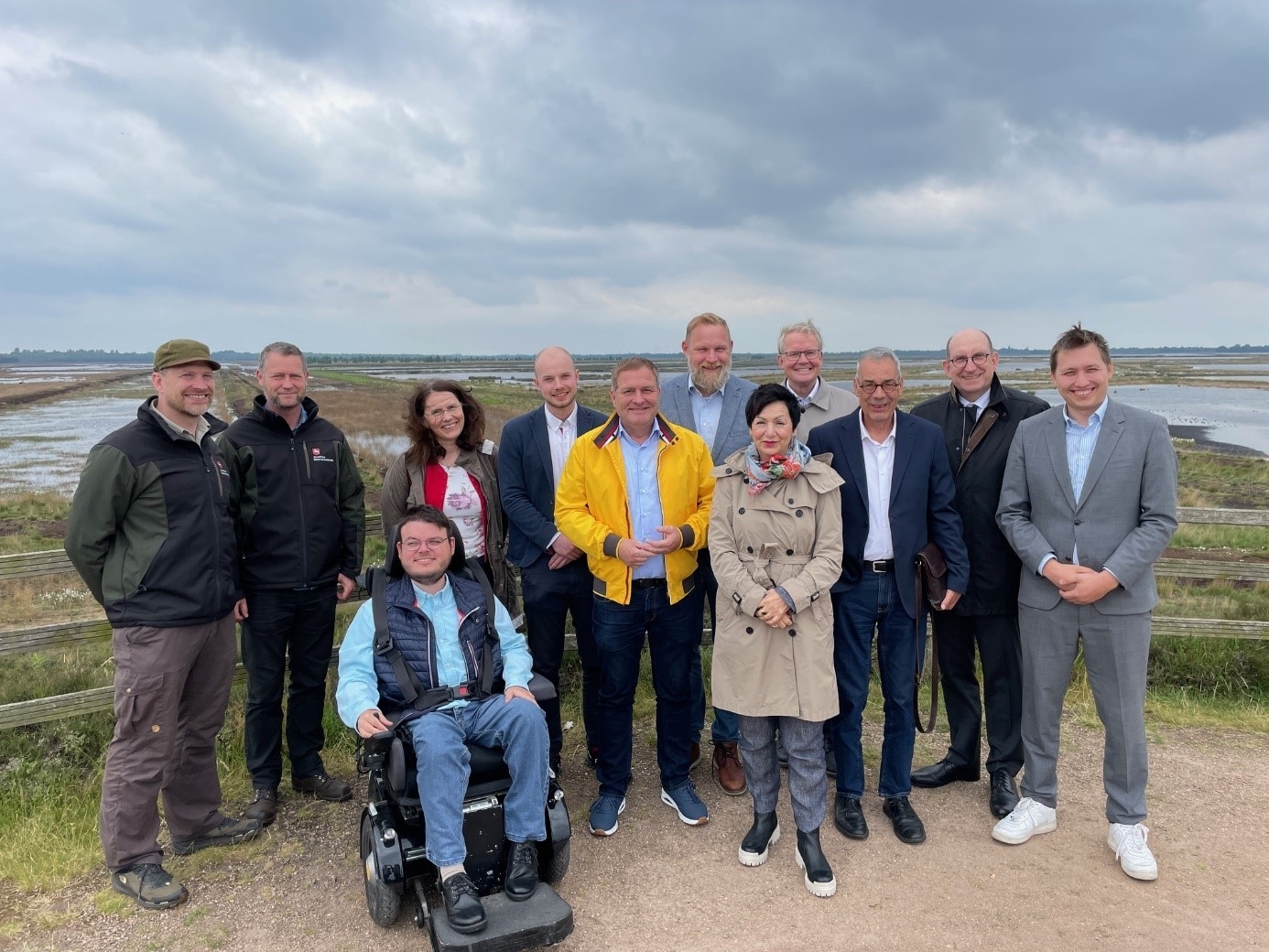 v.l.n.r.: Michael Diekamp (Leiter Staatliche Moorverwaltung, ArL Weser-Ems), Rainer Riesenbeck (Staatliche Moorverwaltung, ArL Weser-Ems), Constantin Grosch, MdL (Mitglied SPD-Landtagsfraktion und Arbeitskreis „Bundes- und Europaangelegenheiten und Regionale Entwicklung“), Andrea Kötter (Vorsitzende des SPD-Kreisverbandes Emsland), Christoph Willeke, MdL (Mitglied SPD-Landtagsfraktion und Arbeitskreis „Umwelt, Energie und Klimaschutz“), Guido Pott, MdL (Mitglied SPD-Landtagsfraktion und Arbeitskreis „Bundes- und Europaangelegenheiten und Regionale Entwicklung“), UIf Prange, MdL (Mitglied SPD-Landtagsfraktion), Immacolata Glosemeyer, MdL Mitglied SPD-Landtagsfraktion und Sprecherin Arbeitskreis „Bundes- und Europaangelegenheiten und Regionale Entwicklung“), Nikolaus Jansen (Landesbeauftragter für regionale Landesentwicklung Weser-Ems), Gerd Hujahn, MdL (Mitglied SPD-Landtagsfraktion und Arbeitskreis „Umwelt, Energie und Klimaschutz“), , Matthias Wunderling-Weilbier (Staatssekretär im Niedersächsischen Ministerium für Bundes- und Europaangelegenheiten und Regionale Entwicklung), Brian Baatzsch, MdL (Mitglied SPD-Landtagsfraktion und Arbeitskreis „Bundes- und Europaangelegenheiten und Regionale Entwicklung“)