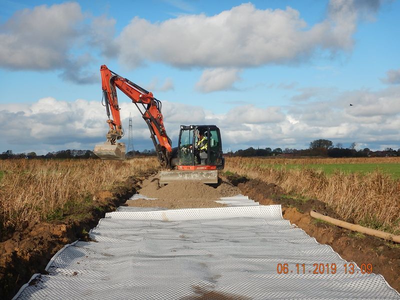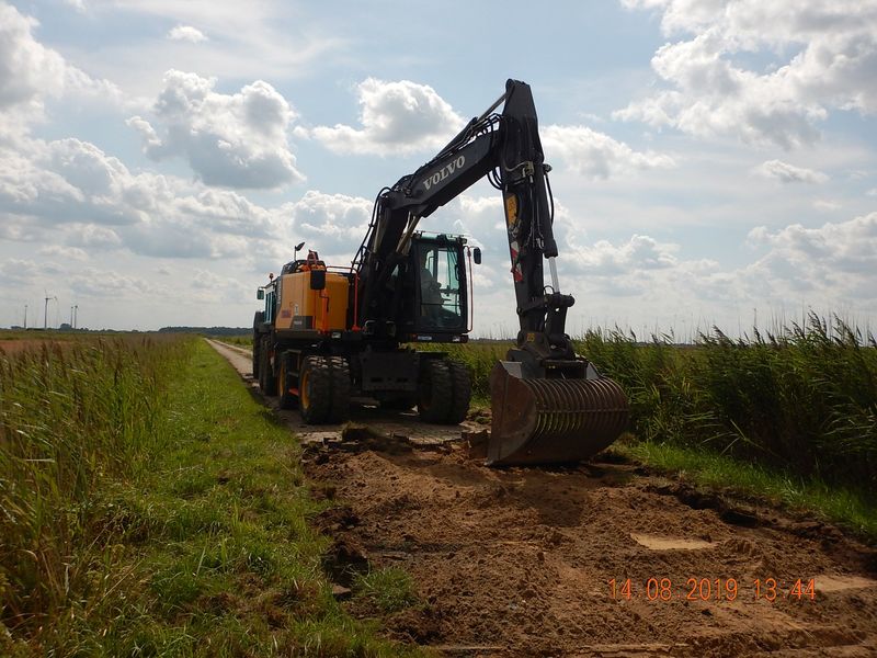 In 2019 wurden bereits der Liekweg, der Rullboomsweg und der Luchsweg auf einer Länge von insgesamt 7,67 km in der 1. Ausbaustufe ausgebaut. Dabei wurde die vorhandene Pflasterdecke aufgenommen und durch eine Schottertragschicht auf einem Geogitter ersetzt. Die Kosten hierfür beliefen sich auf rund 720.000, --€. Bei der diesjährigen Maßnahme erhalten die Wege des 1. Bauabschnittes ihre endgültige Befestigung in Asphalt und in Teilbereichen in Betonspurbahnen. Außerdem werden noch die Wege Huckstede und Theensweg in leichter Befestigung (Schotter) und der Hohe Weg mit Asphalt befestigt. Insgesamt sind dann 10,1 km im Verfahrensgebiet ausgebaut worden.