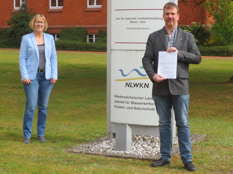 Das Amt für regionale Landesentwicklung (ArL) Weser-Ems, Geschäftsstelle Aurich hat mit der Übergabe eines Bewilligungsbescheides über Zuwendungen in Höhe von rund 740.000 Euro den Weg zur weiteren Verbesserung der Agrarstruktur in der Flurbereinigung Arler Hammrich im Landkreis Aurich freigemacht. Dezernatsteilleiterin Frau Marlies Wieghaus übergab den Bescheid am heutigen Montag dem Vorsitzenden der Teilnehmergemeinschaft (TG) Herrn Heiko Wäcken.
