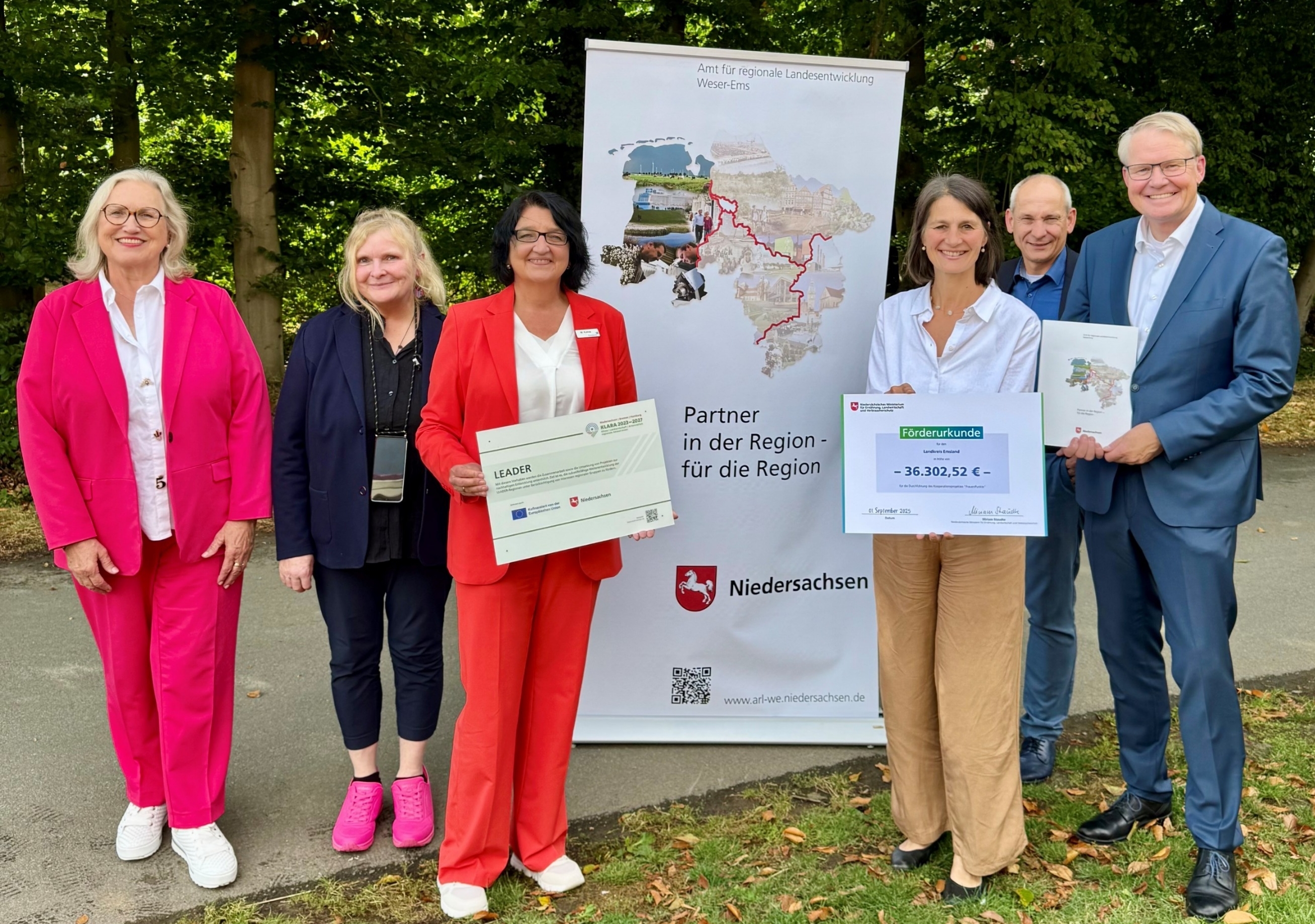 Ministern Staudte: „Frauen bilden die Hälfte unserer Gesellschaft und doch sind es oft die Taten von Männern, die – sei es durch Denkmäler oder auch in Büchern – für die Gesellschaft sichtbar gemacht werden. Der Landesfrauenrat hat mit der Initiative „frauenORTE Niedersachsen“ eine großartige Idee umgesetzt, die in vielen Regionen unseres Bundeslandes die Geschichten von klugen und mutigen Frauen in Erinnerung ruft und als Teil ihrer Vergangenheit in der Erinnerungskultur in den Kommunen und Regionen fest verankert. Es ist toll und absolut förderwürdig, dass es auch im Emsland künftig in den fünf LEADER-Regionen diese gleichermaßen spannenden wie wichtigen Orte geben wird.“