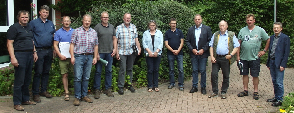 Foto nach der Vorstandswahl (v. l.): Enno Janssen, Hero Rewerts, Arend J. te Brake, Jannes Ippen, Jann Wenholt, Dr. An-dreas Bukowski, Frau Gertrud Meyerhoff, Heiner Müller, Konke Wienekamp, Gemeinde Südbrookmerland, Dieter Dirksen, Gerhard Meyenburg, Josef Baalmann, ArL Weser-Ems