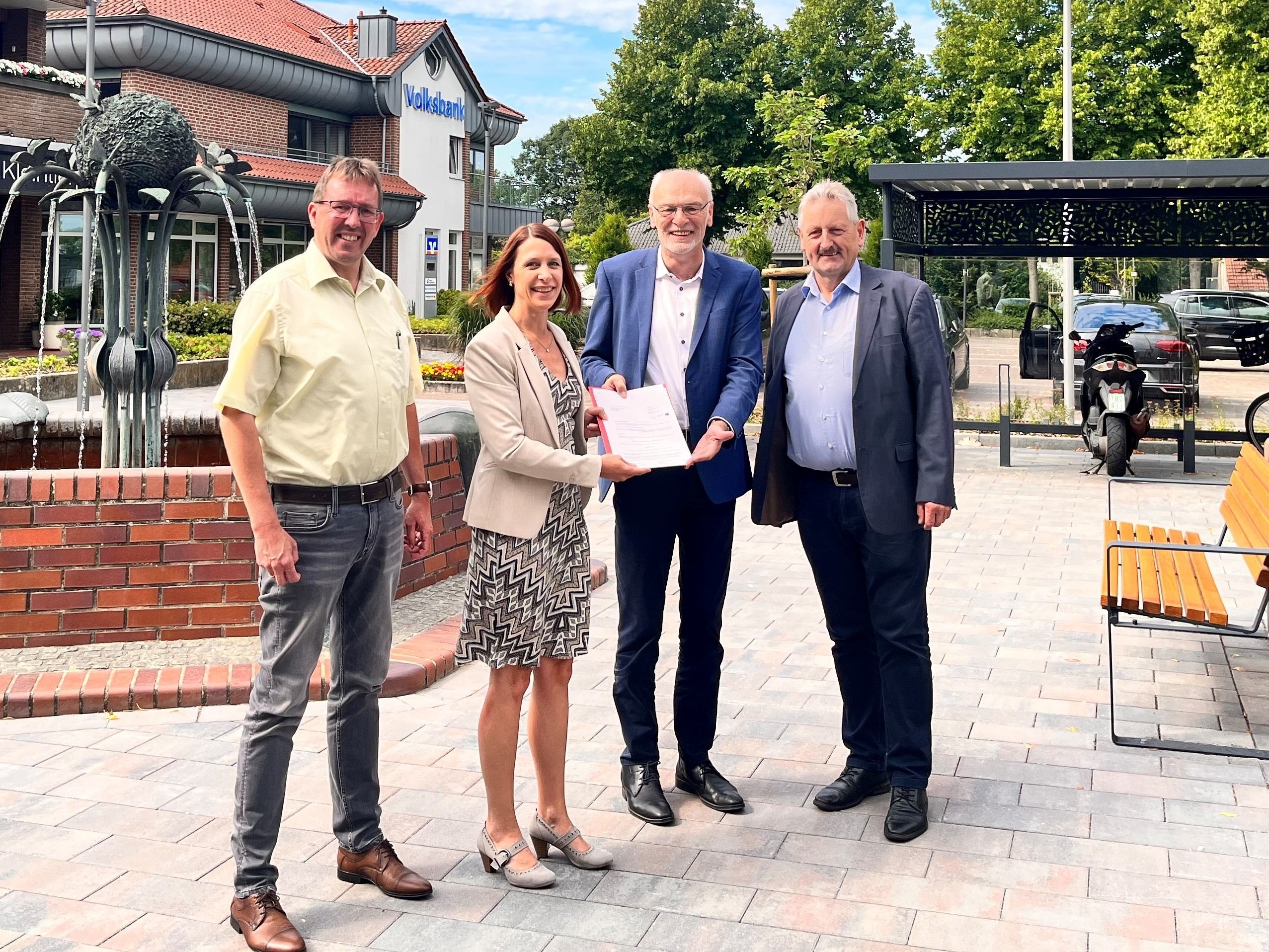 Herzlake – Das Land Niedersachsen unterstützt die Samtgemeinde Herzlake bei der Weiterentwicklung des Ortskerns von Herzlake. Franz-Josef Sickelmann, Landesbeauftragter für regionale Landesentwicklung Weser-Ems, übergab am (heutigen) Mittwoch einen entsprechenden Förderbescheid in einer Gesamthöhe von 324.619,66 Euro an Samtgemeindebürgermeisterin Martina Schümers. Die Mittel stammen aus dem Sofortprogramm „Perspektive Innenstadt!“, mit dem die Landesregierung den Innenstädten mit EU-Geldern nach der Corona-Pandemie neue Entwicklungschancen eröffnen will.