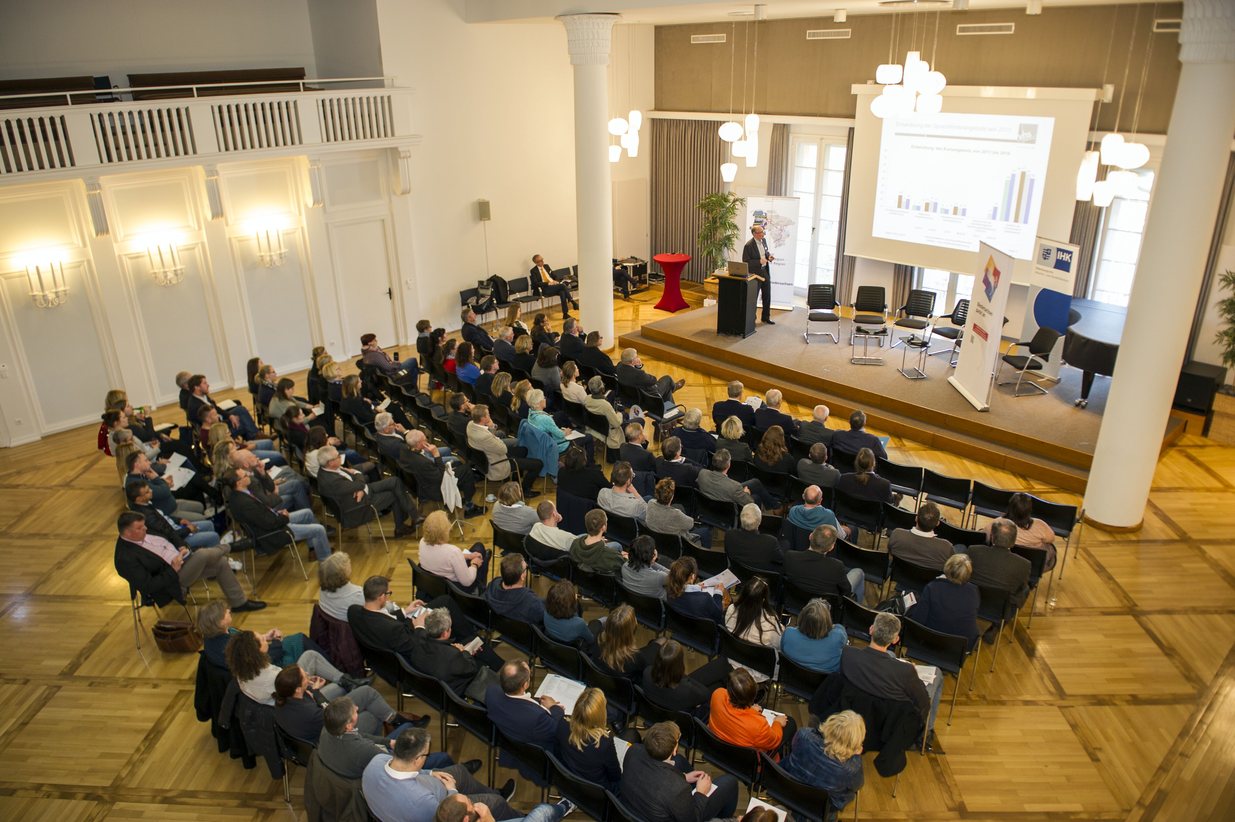 Rund 100 Teilnehmerinnen und Teilnehmer folgten am heutigen Dienstag, den 26.02.2019, der gemeinschaftlichen Einladung des Amtes für regionale Landesentwicklung Weser-Ems, der Oldenburgischen Industrie- und Handelskammer, der Handwerkskammer Oldenburg und des Bündnisses „Niedersachsen packt an“ zur regionalen Integrationskonferenz Positionsbestimmung „Integration“ in Weser-Ems in den „Alten Landtag“ in Oldenburg.