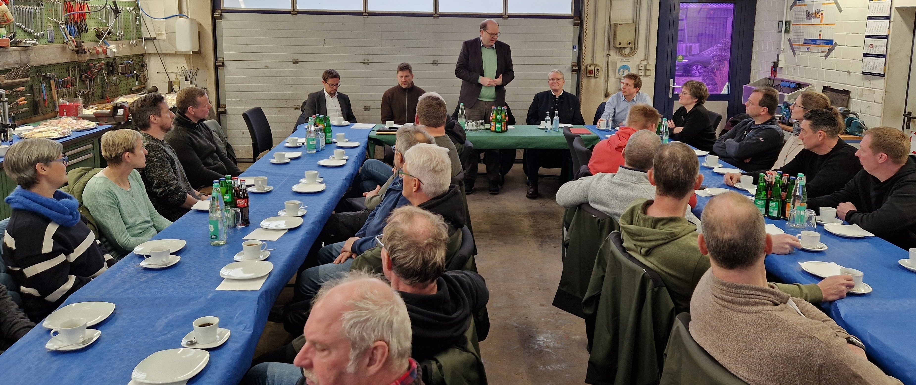 Umwelt- und Klimaschutzminister Christian Meyer hat jetzt gemeinsam mit dem Landesbeauftragten Nikolaus Jansen die Staatliche Moorverwaltung in ihrer Zentrale in Meppen besucht. Die Staatliche Moorverwaltung ist ein Dezernat des Amts für regionale Landesentwicklung Weser-Ems, das von Nikolaus Jansen geleitet wird. Sie betreut rund 18.000 ha landeseigener Flächen im Raum Weser-Ems und damit einen großen Anteil der landesweit insgesamt rund 30.000 Hektar landeseigener Moorflächen. Mit einem Team aus rund 40 Mitarbeiterinnen und Mitarbeitern an fünf Standorten (Zentrale vier Außenarbeitsstellen) nimmt sie neben der Liegenschaftsverwaltung vor allem die Aufgabe der Pflege und Entwicklung der überwiegend in Schutzgebieten liegenden Moorflächen zu Klima- und Naturschutzzwecken wahr. Dies erfolgt größtenteils in Eigenregie mit eigener Ausstattung, teilweise eigens entwickelten Spezialmaschinen und erfahrenem Fachpersonal.