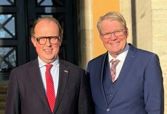 Am 14. Januar konnte der Landesbeauftragte Nikolaus Jansen den Gedeputeerden der Provinz Fryslân, Friso Douwstra, zu einem fachlichen Austausch begrüßen. Im Mittelpunkt des Treffens standen Chancen und Möglichkeiten der grenzübergreifenden Zusammenarbeit in Fryslân und Weser-Ems. Insbesondere im Bereich des Wassermanagements und der zirkulären Wirtschaft gibt es viel Potenzial, die gute bisherige Zusammenarbeit noch weiter auszubauen.