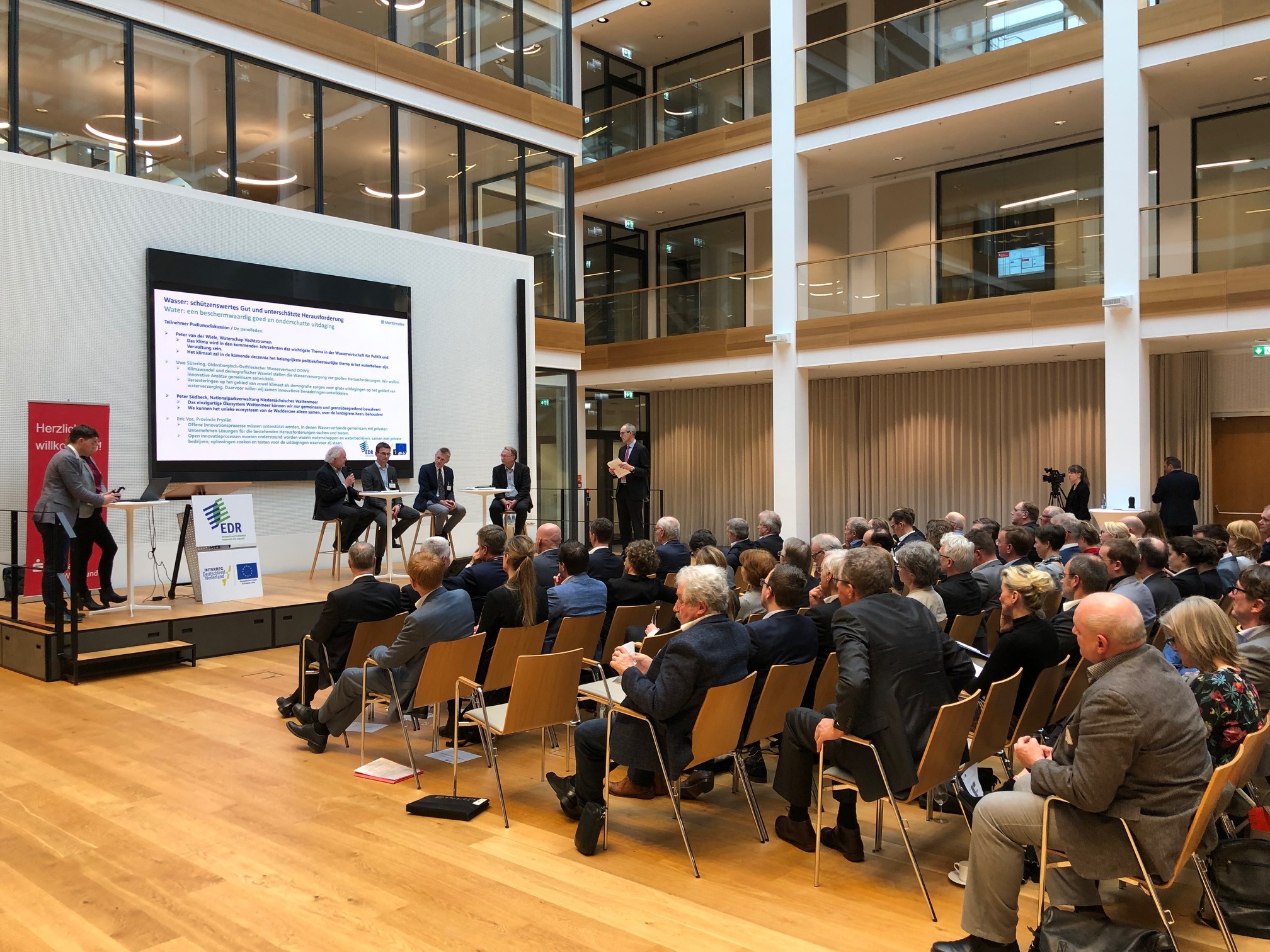 Der Landesbeauftragte für regionale Landesentwicklung Franz-Josef Sickelmann hat am 28. Februar 2019 an der Präsentation der Strategie No(o)rd 2020+ im SparkassenForum in Leer teilgenommen. Im Rahmen einer Podiumsdiskussion zur zukünftigen Zusammenarbeit im Bereich Interreg A hob der Landesbeauftragte die Bedeutung der grenzüberschreitenden Zusammenarbeit für den Grenzregionen hervor. "Wir werden auch weiterhin alles in Bewegung setzen, um in der Grenzregion Niedersachsen-Niederlande gute Voraussetzungen für unseren gemeinsamen Lebens-und Wirtschaftsraum zu schaffen sowie die gute Kooperation zwischen den nördlichen Provinzen und dem Weser-Ems Gebiet weiter ausbauen", sagte Sickelmann, "Dazu wollen wir gemeinsam die Chancen nutzen, die wir aktuell haben und uns mit den Provinzen für eine Fortsetzung der Förderung der grenzübergreifenden Zusammenarbeit in der künftigen Europäischen Strukturpolitik nach 2020 einsetzen."