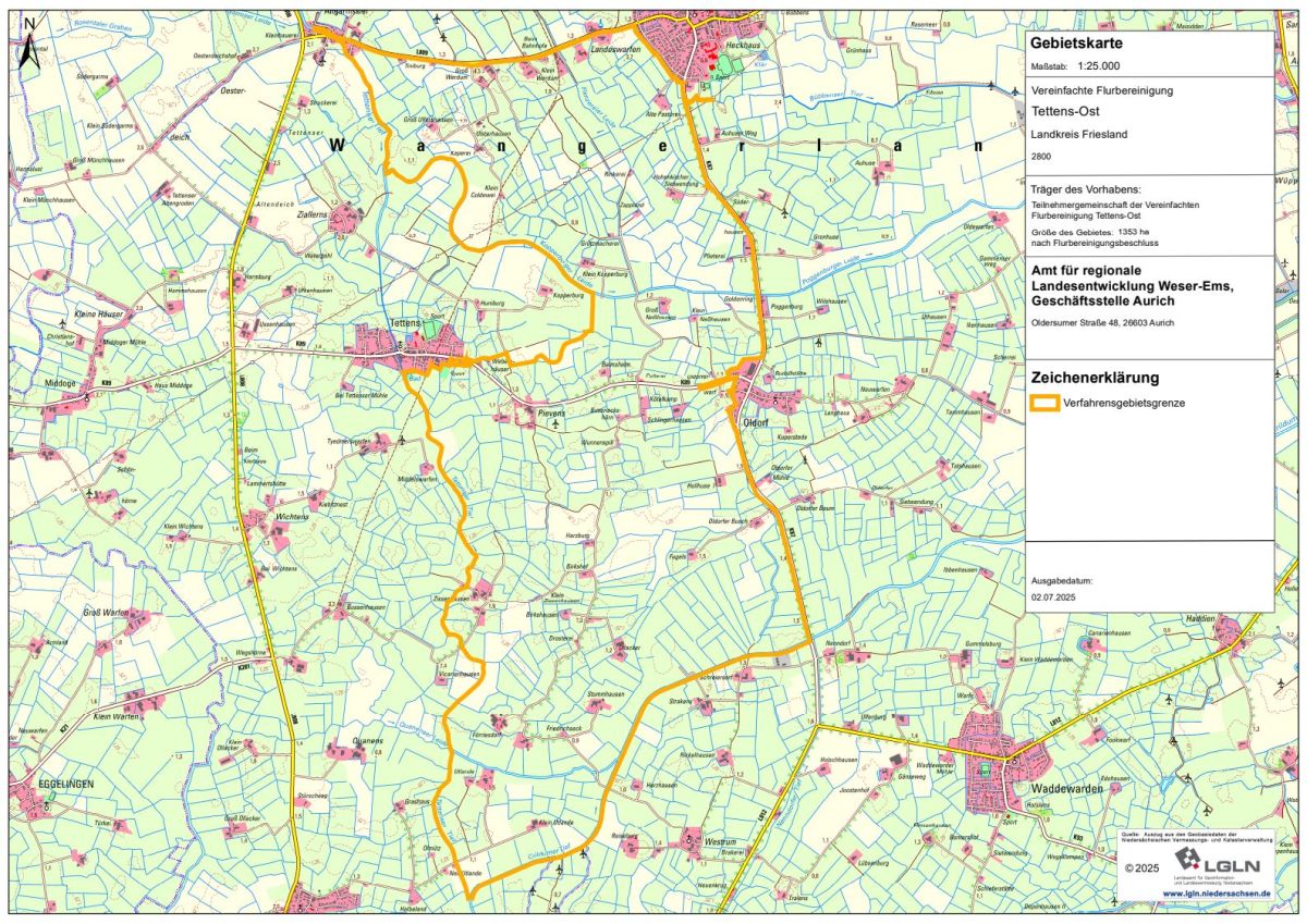 Das Flurbereinigungsgebiet „Tettens-Ost“ befindet sich in der Gemeinde Wangerland zwischen den Ortschaften Tettens und Oldorf.