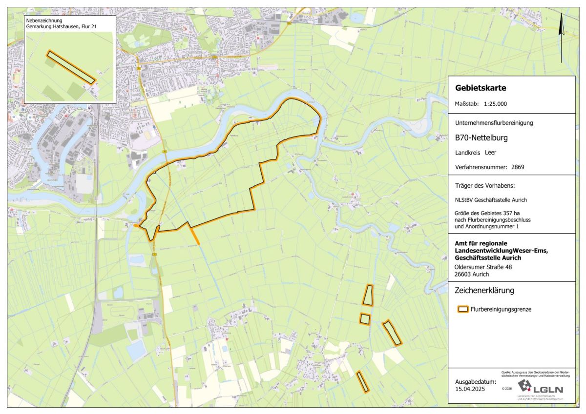 Das Flurbereinigungsgebiet B70-Nettelburg liegt im Landkreis Leer und beinhaltet Teile der Stadt Leer, der Gemeinde Westoverledingen und der Gemeinde Rhauderfehn.