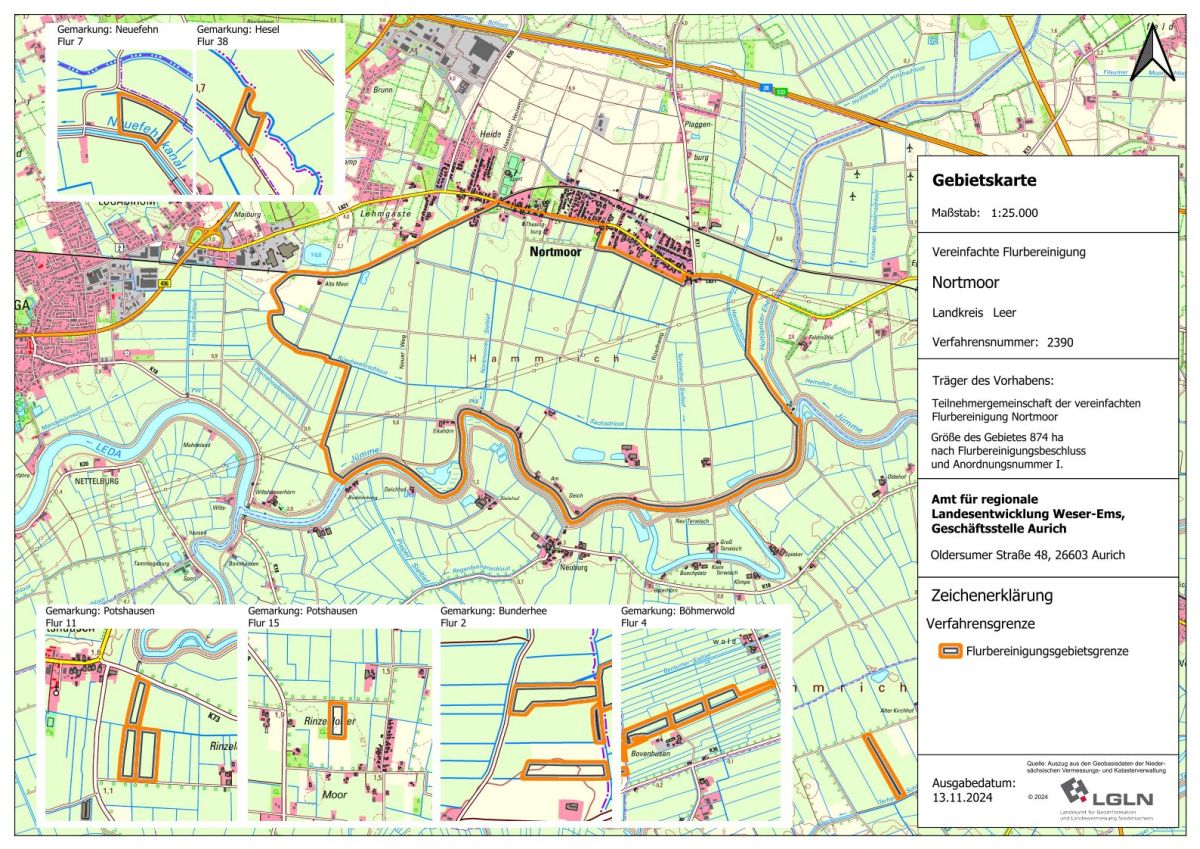 Das Flurbereinigungsverfahren Nortmoor liegt im Bereich der Gemeinde Nortmoor (Samtgemeinde Jümme).