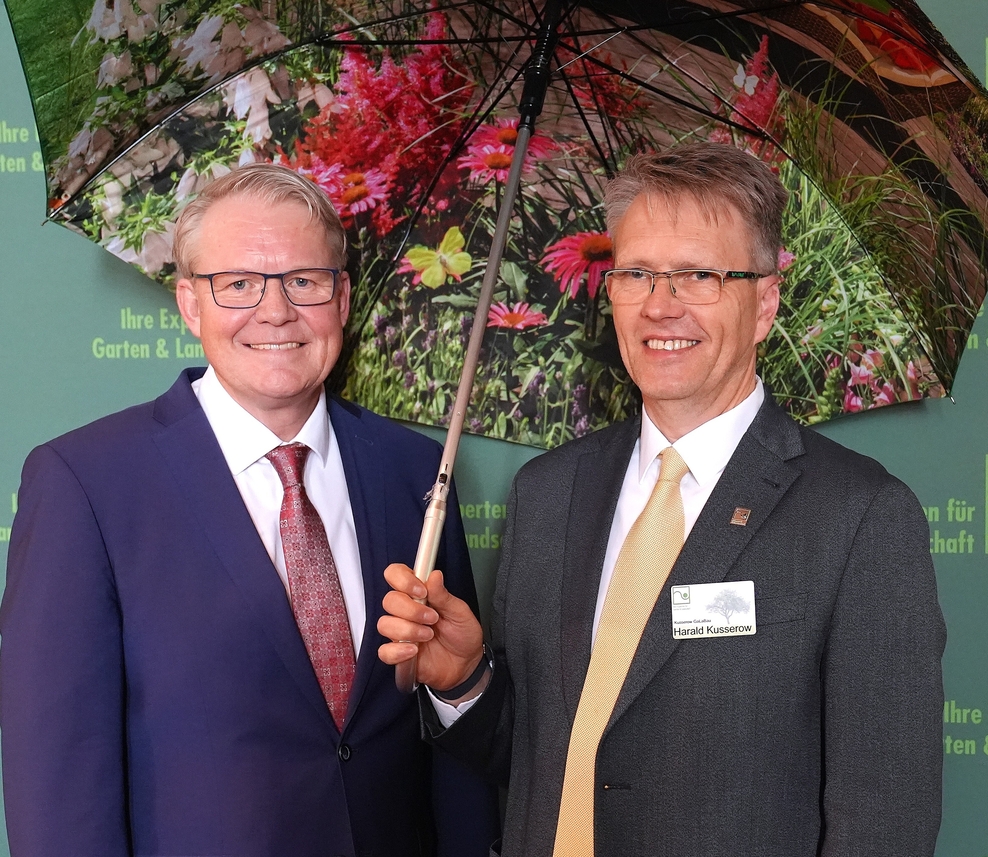 Nikolaus Jansen, Landesbeauftragter für regionale Landesentwicklung Weser-Ems, sprach jetzt als Gastredner auf der Mitgliederversammlung des Verbandes Garten-, Landschafts- und Sportplatzbau Niedersachsen-Bremen. Dort wurde der langjährige Präsident Harald Kusserow (r.) verabschiedet. mehr